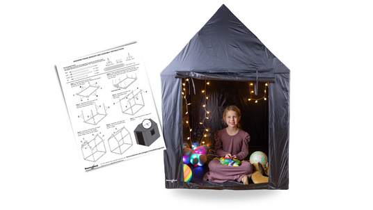 Assemble the pop up portable sensory den with easy-to-follow instructions. This dark den makes it simple to create a calm, every-changing environment for classroom and home use.